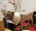 I used a brown faux fur with light brown tips to cover the body, legs and head. The collar and tail were a longhair off-white fabric. The fur on the face and “hooves” were trimmed to appear darker.