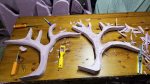 The antlers were carved separately then attached after they were coated in glue and paint.